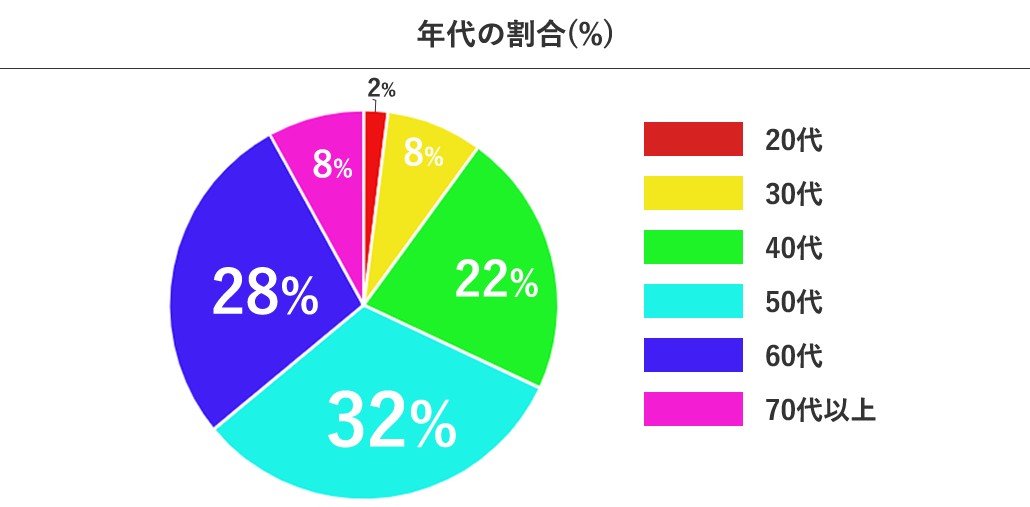 | 年齢層 | 女性:18歳〜30代 男性:20代〜70代 |