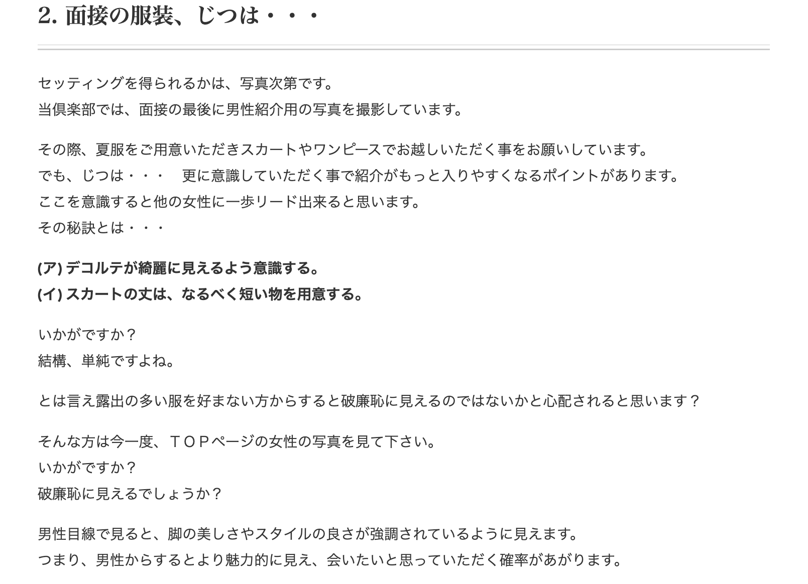 確かに他の交際クラブは女性会員の人数を確保するために、面接に応募された女性のほとんどを合格させるところもあります。