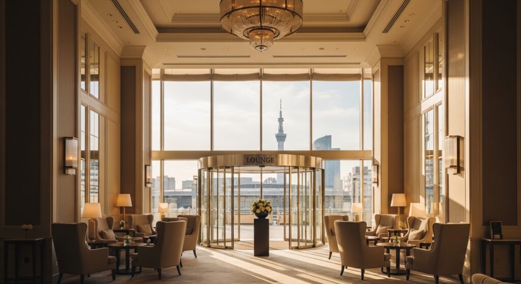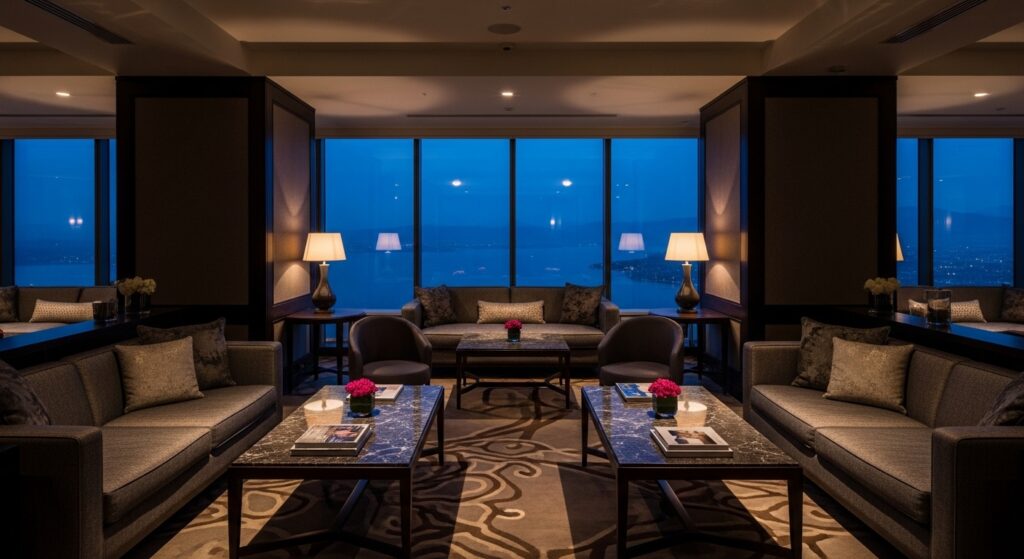 浜松駅北口直結のアクトシティ浜松内にある高級ホテルのラウンジです。アクトタワー(地上45階建て)の低層階に位置し、吹き抜けの開放的な空間が特徴です。テーブル間隔が広く、落ち着いた照明のなかでゆっくり会話ができるため、初回の顔合わせに最も向いている場所のひとつです。新幹線改札からペデストリアンデッキ経由で徒歩5分と動線も良く、出張パパからの指定率が高いスポットです。アフタヌーンティーやケーキセットの品質も高く、料金はやや高めですがパパが支払うケースがほとんどです。