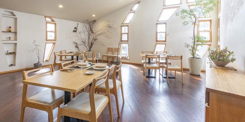 開放感のある自然派カフェレストラン。リゾート気分を味わえる雰囲気で、カジュアルなパパ活デートや気軽な食事に向いています。